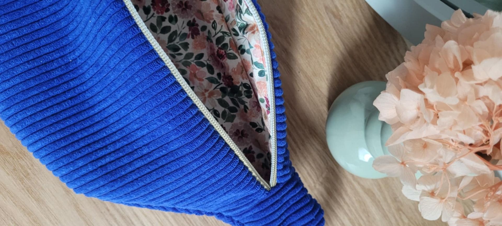 Le petit truc en + : Le curseur doré et son joli noeud à motif (tissu identique à la doublure)